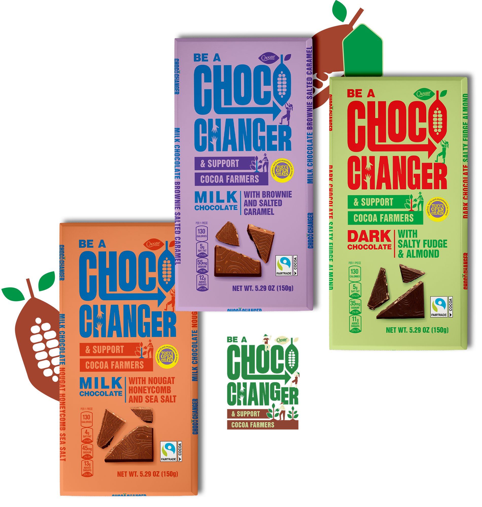 Sweet, delicious, and 100% sustainably sourced! Your choice has a positive impact on cocoa farmers in West Africa and their communities. All cocoa beans for our Choceur CHOCO CHANGER are Fairtrade certified and responsibly sourced via Tony’s Open Chain. By adopting their principles for sustainable sourcing, we take full responsibility for our cocoa supply chain.