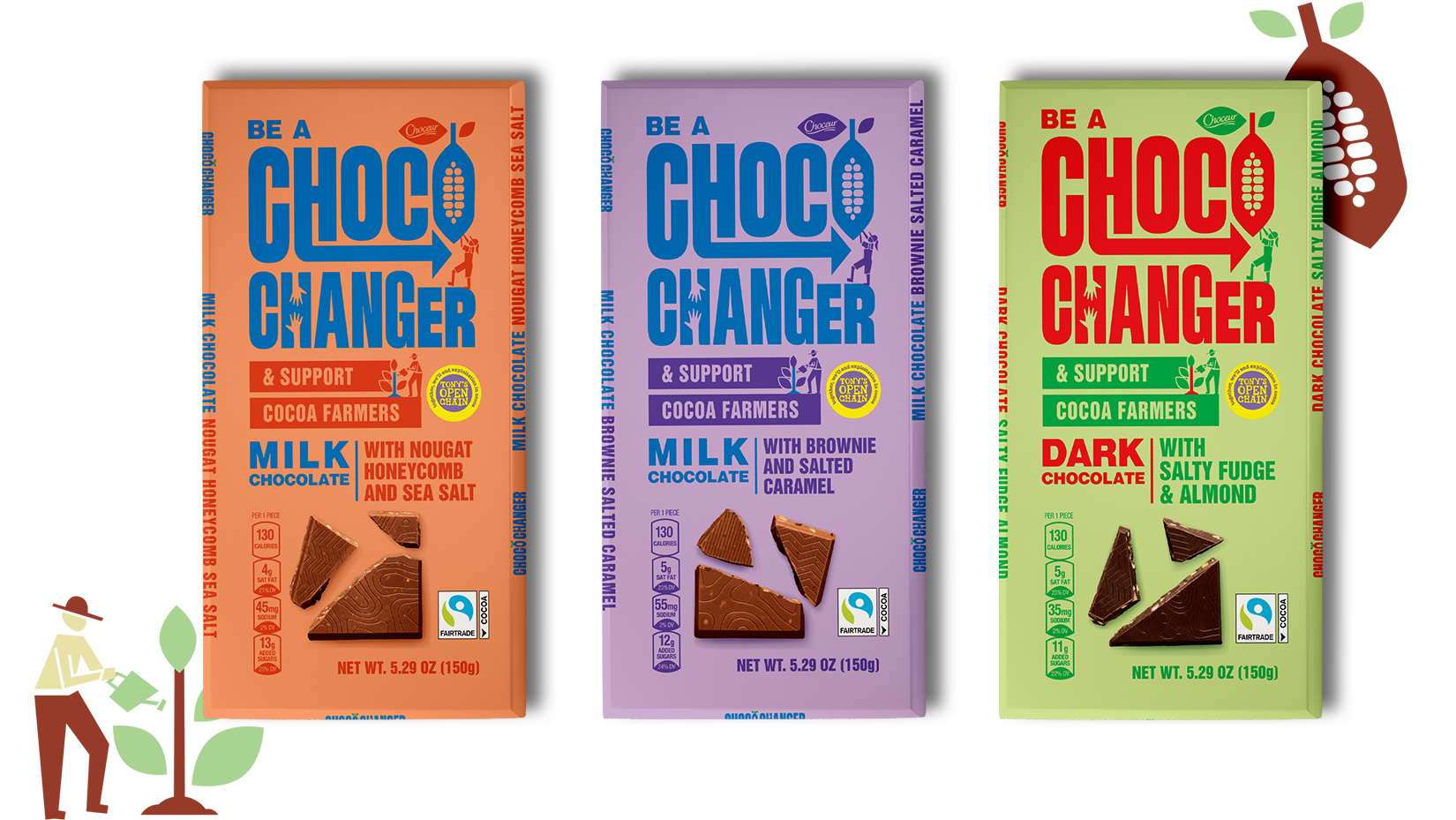 The Choceur CHOCHO CHANGER bars are made from 100% Belgian chocolate. The cocoa used in our CHOCO CHANGER bars is Fairtrade certified.